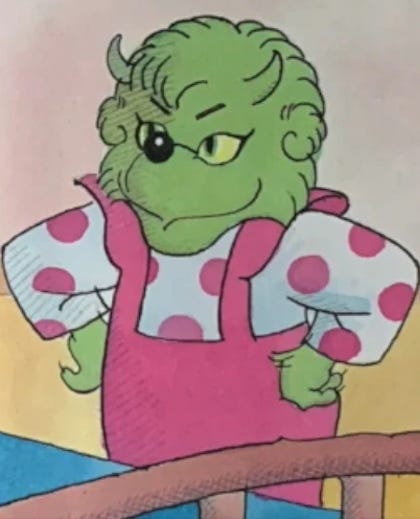 I loved The Berenstain Bears as a kid. They had a book about every scenario that could afflict a nuclear family of bears, but I remember one book most of all: The Green-Eyed Monster. When Brother Bear got a shiny new bicycle for his birthday, Sister Bear was filled with longing. Not only did she desire what she did not have, but if she couldn’t have it, neither should Brother Bear. That feeling transformed Sister Bear into a Grinch-like creature with green fur and evil eyes.